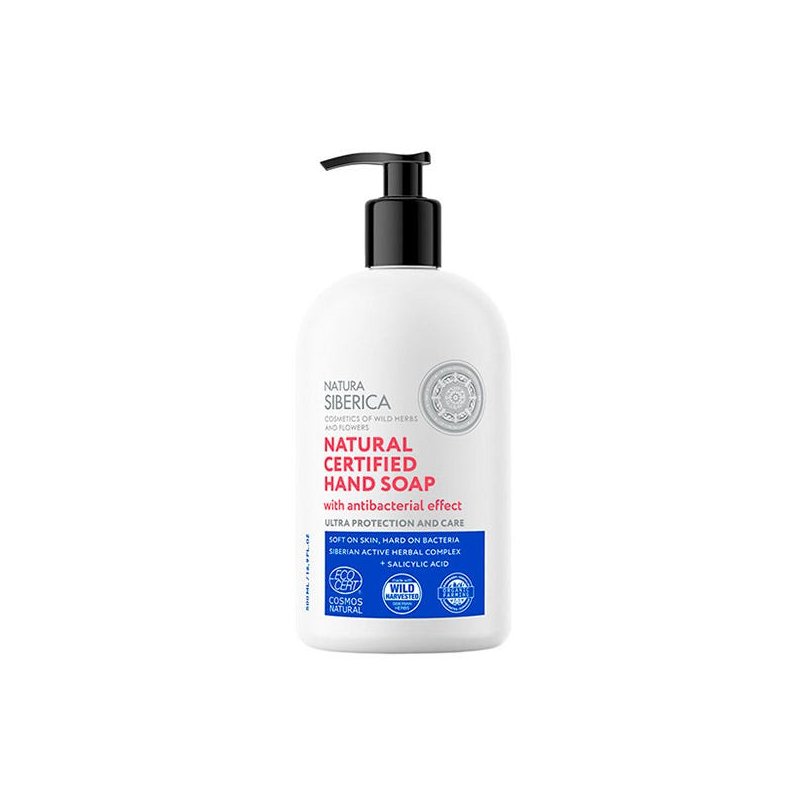 Basado en una mezcla hierbas activas siberianas como la artemisa, el romero y la menta y junto al ácido salicílico, este jabón de manos limpia suavemente las manos dejando la piel suave y cuidada y aporta un efecto antibacteriano.